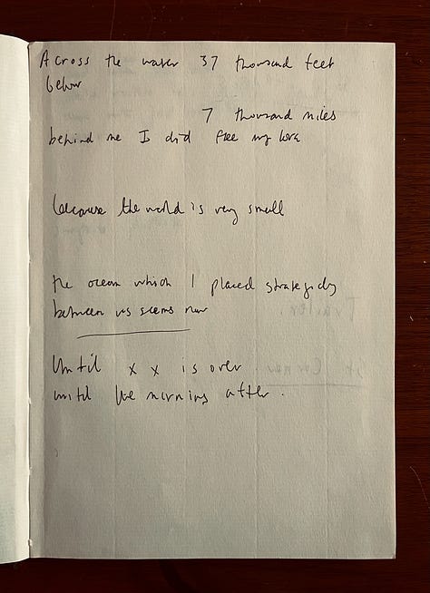 By this point I was aware of the difficulty involved in addressing the here and now, and mostly, over the previous decade, I’d had litle inclination in this direction, and when I had, I’d hidden it under the third person, or some other guise. But here I was at 35 writing