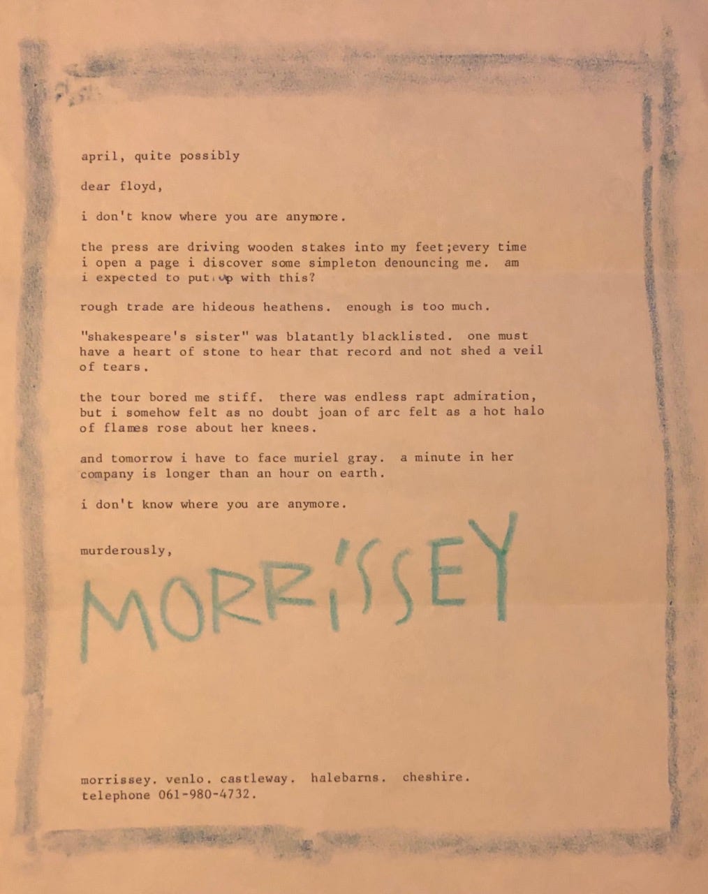 Morrissey kept changing his phone number and if I wanted to catch up I'd have to call his PR person, and I tired of that.